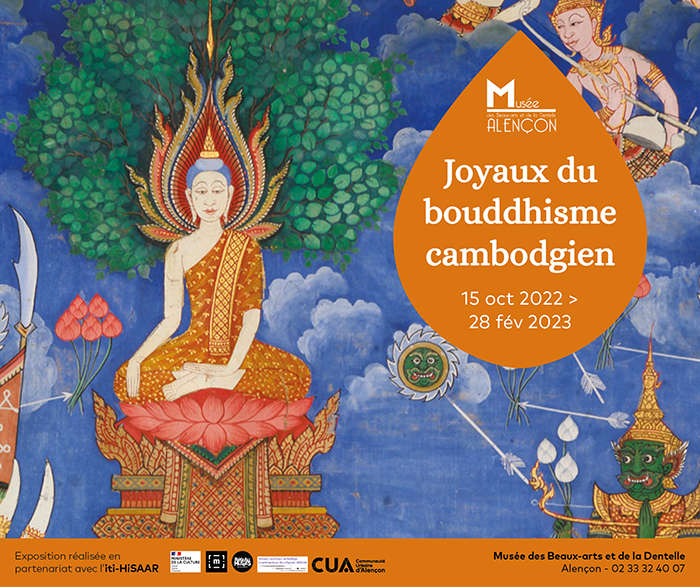 Présentée jusqu’au 28 février 2023, l’exposition Joyaux du bouddhisme cambodgien est organisée en partenariat avec l’Institut Thématique Interdisciplinaire HiSAAR (Histoire, sociologie, archéologie et anthropologie des religions) de l’université de Strasbourg. Elle réunit des œuvres remarquables, la plupart du temps invisibles du grand public en raison de leur sensibilité à la lumière. Elles sont issues de la collection de l’Alençonnais Adhémard Leclère (1853-1917), Résident de France au Cambodge de 1886 à 1910.