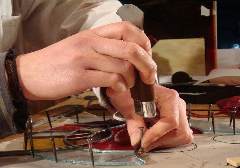 SAMEDI 23 MARS, de 14h à 18h, à l’occasion du Week-End Musées Télérama, Emilie Thomas, historienne d’art et artiste-verrier, axant depuis dix ans son travail sur une recherche plastique du verre, personnelle et contemporaine, animera une démonstration commentée sur les techniques traditionnelles (coupe du verre au diamant, peinture à la grisaille, sertissage au plomb, soudure à l’étain …) et récentes du vitrail (sablage, thermoformage, collage UV, dorure …) à travers la réalisation d’un panneau de vitrail comportant des techniques mixtes.